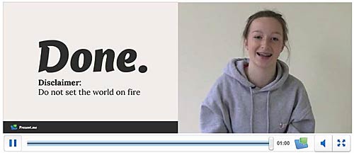 In terms of what it does best, well there are other services out there which allow you to present content, but Present.me really is the only one which allows you to create an online presentation with yourself presenting it, viewable on demand. I would say the best thing about it is it’s simplicity – it’s really easy to upload content, click record and talk into your webcam as you click through your slides. It’s in the cloud so you don’t need to install anything, and it’s mobile so will work in any browser, on an iPad and coming soon on any Android or iOS device with an app.